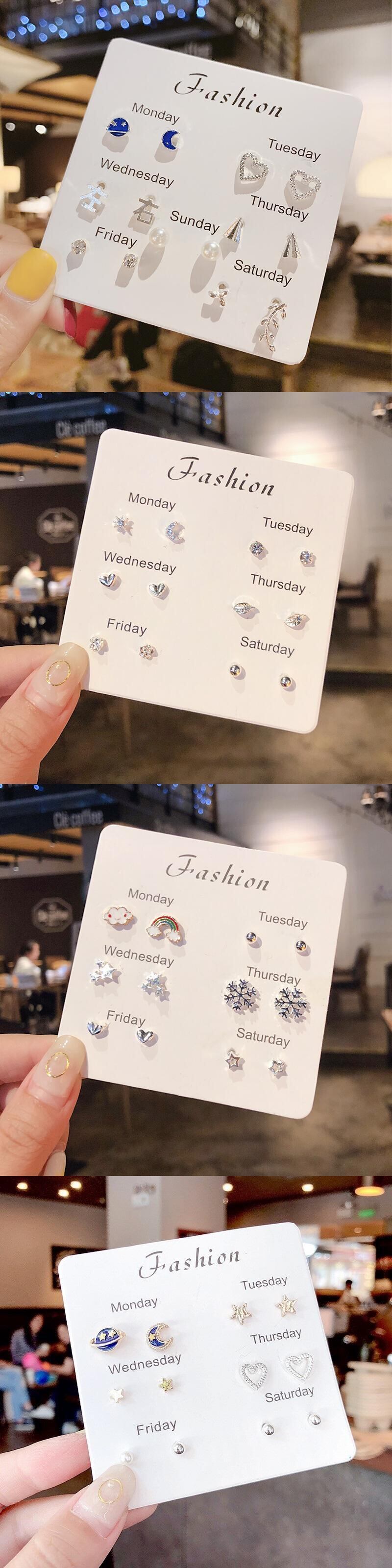 送料無料 バージョンのホット Af Aweek イヤリングセット 7 ペアのシンプルでスイートなイヤリングセットの組み合わせの Week ジュエリーギフト 大人ガーリー スウィート キュート カジュアル 指輪 AE12776767722061123145