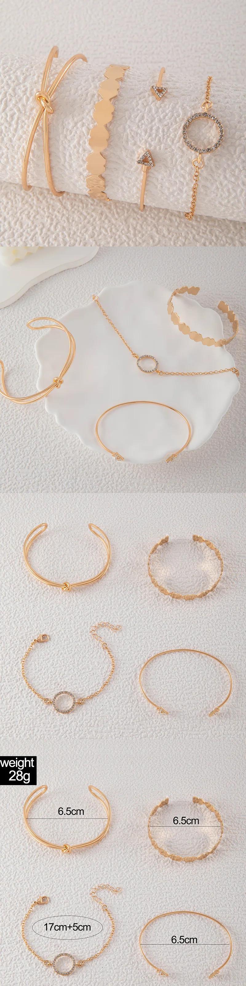 送料無料 4 ピース/セットボヘミアゴールドカラー丸みブレスレットセット女性幾何学的な矢印チャームラップバングル自由奔放に生きる女の子ジュエリーギフト AE12776767779238423448