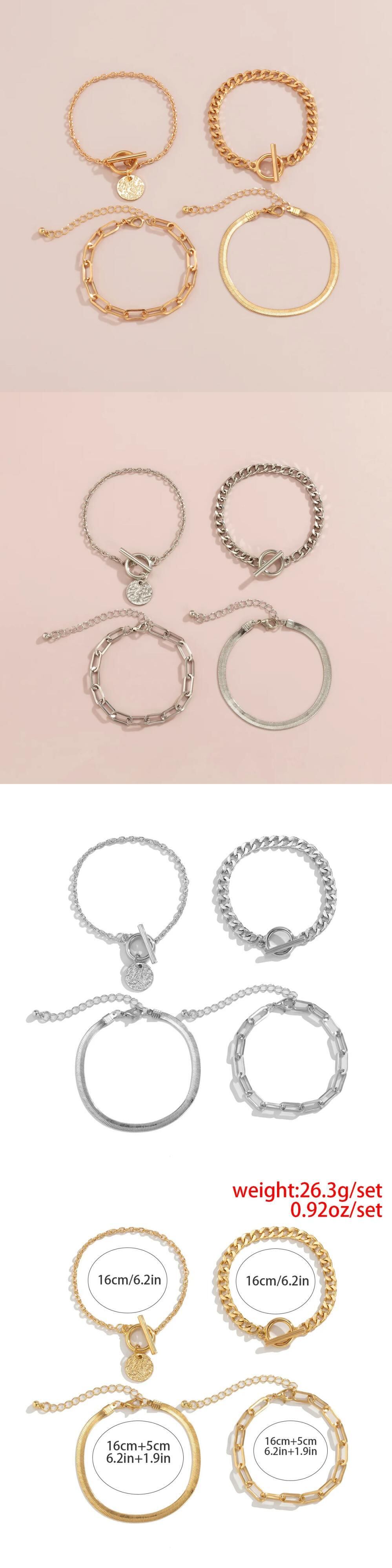送料無料 4 個のブレスレットセット女性ヒップホップトレンドスネークボーンチェーンブレスレットセットヴィンテージメタル ot アクセサリーコンビネーションジュエリー ビンテージ AE1277676776845734114