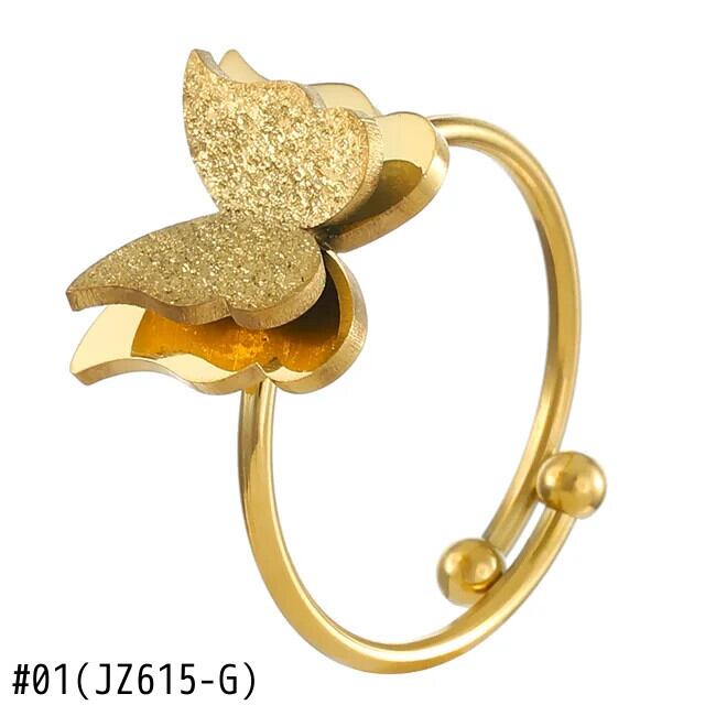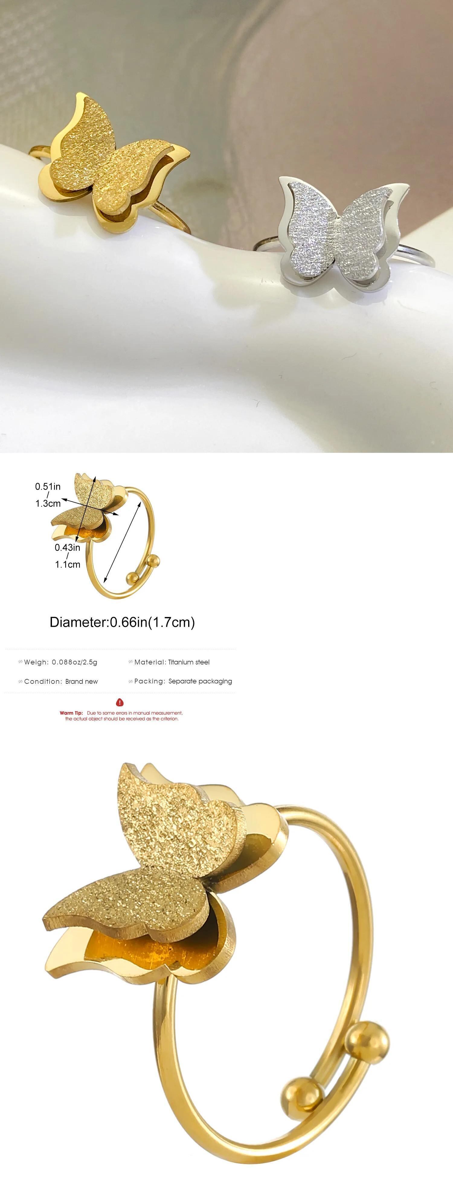 送料無料 ミニマリズムステンレス鋼蝶リングゴールド/シルバーカラーの女性つや消しダブルデッキオープニングリングジュエリーギフト 指輪 銀 AE12776767794755830129