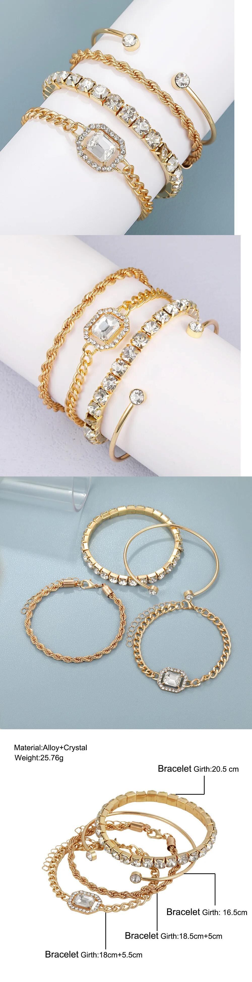 送料無料 4 ピース/セットヴィンテージゴールドカラーカフジルコンブレスレットセットラブハートスターブレスレットバングルジュエリーギフト ビンテージ AE12776767774625523616