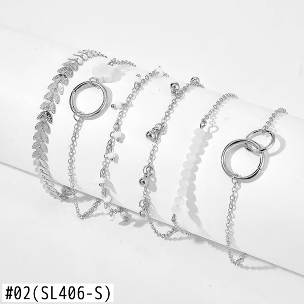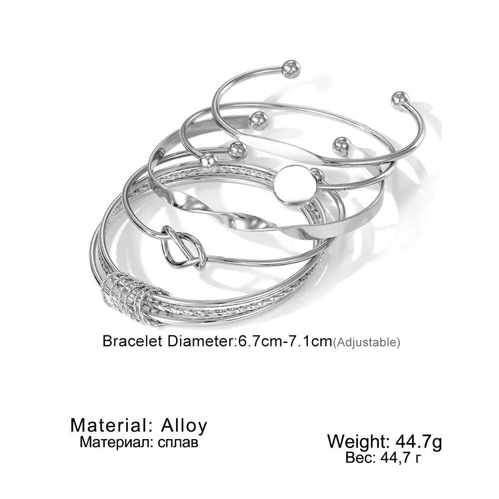 送料無料 5 個セットゴールド/シルバーカラーのチャームブレスレット女性レトロ光沢のある幾何学的な金属ツイストチェーンバングルブレスレットセットジュエリー 銀 AE12776767785138740375