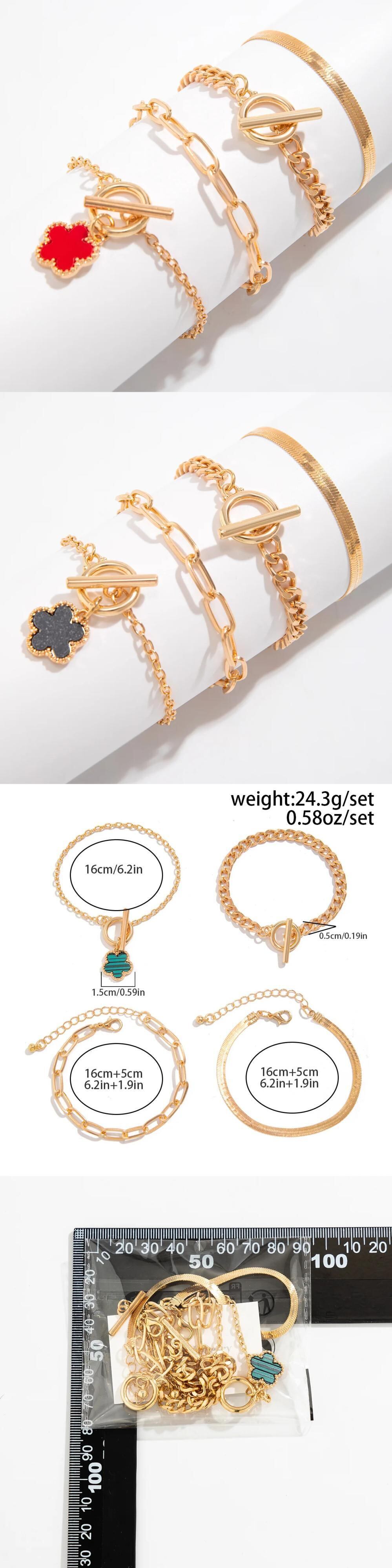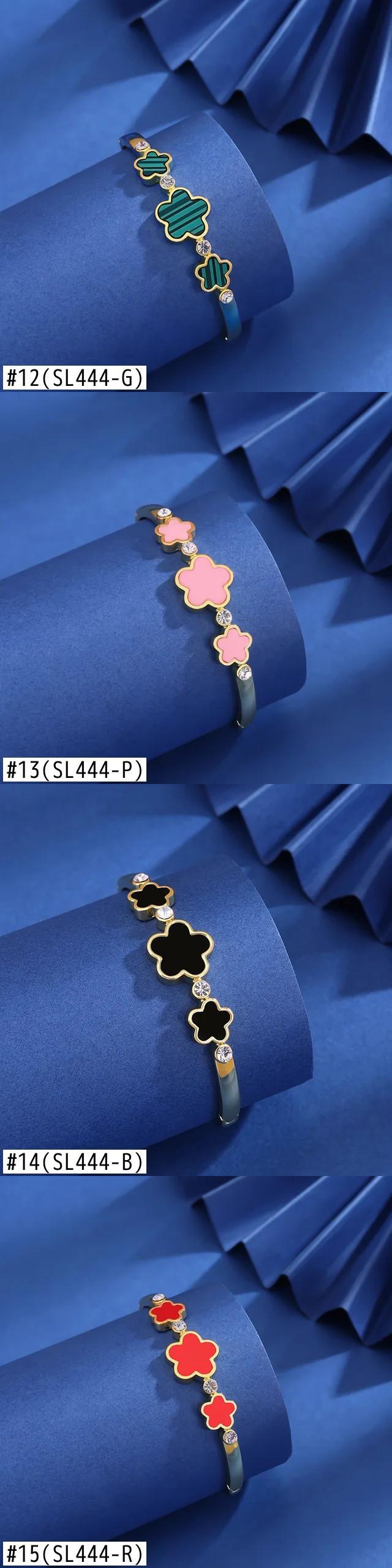 送料無料 幸運の 5 枚の花びらの花 5 葉のクローバーカラーメタル花ジルコンブレスレット女性パーティージュエリーブレスレットギフト レッド 花柄 フラワーデザイン AE12776767778777578782