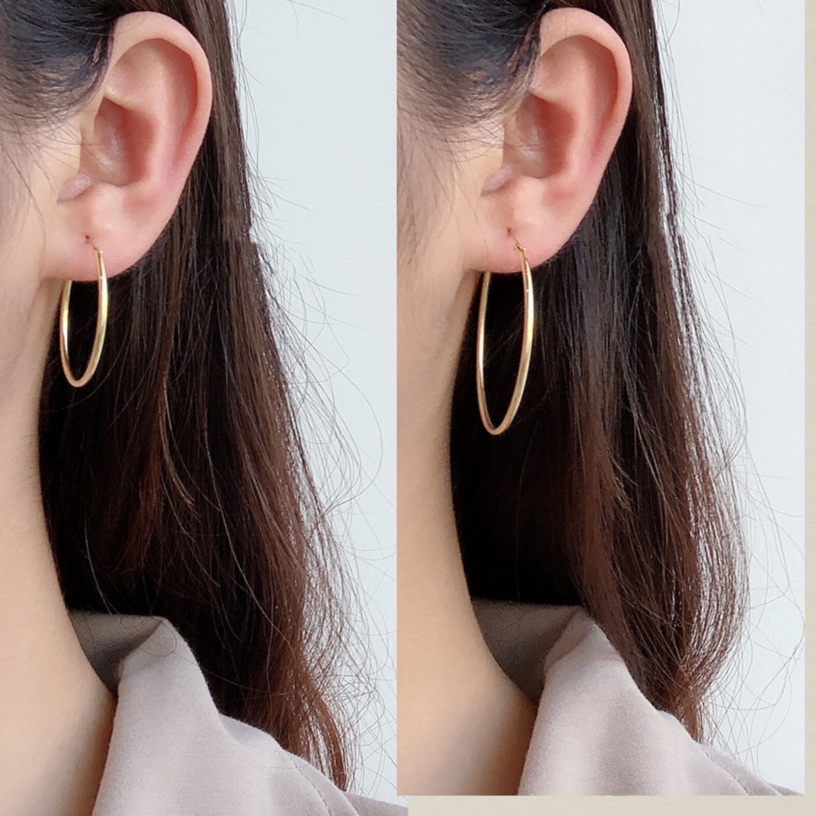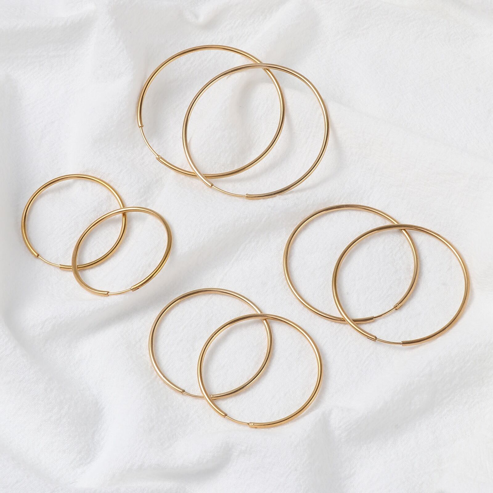 送料無料 1 Paar 12-54mm einfache Edelstahl 0,9mm Creolen Gold Farbe Kreis Ring Ohringe für Frauen Männer Hochzeits feier Schmuck リング 指輪 AE6677633221141680337