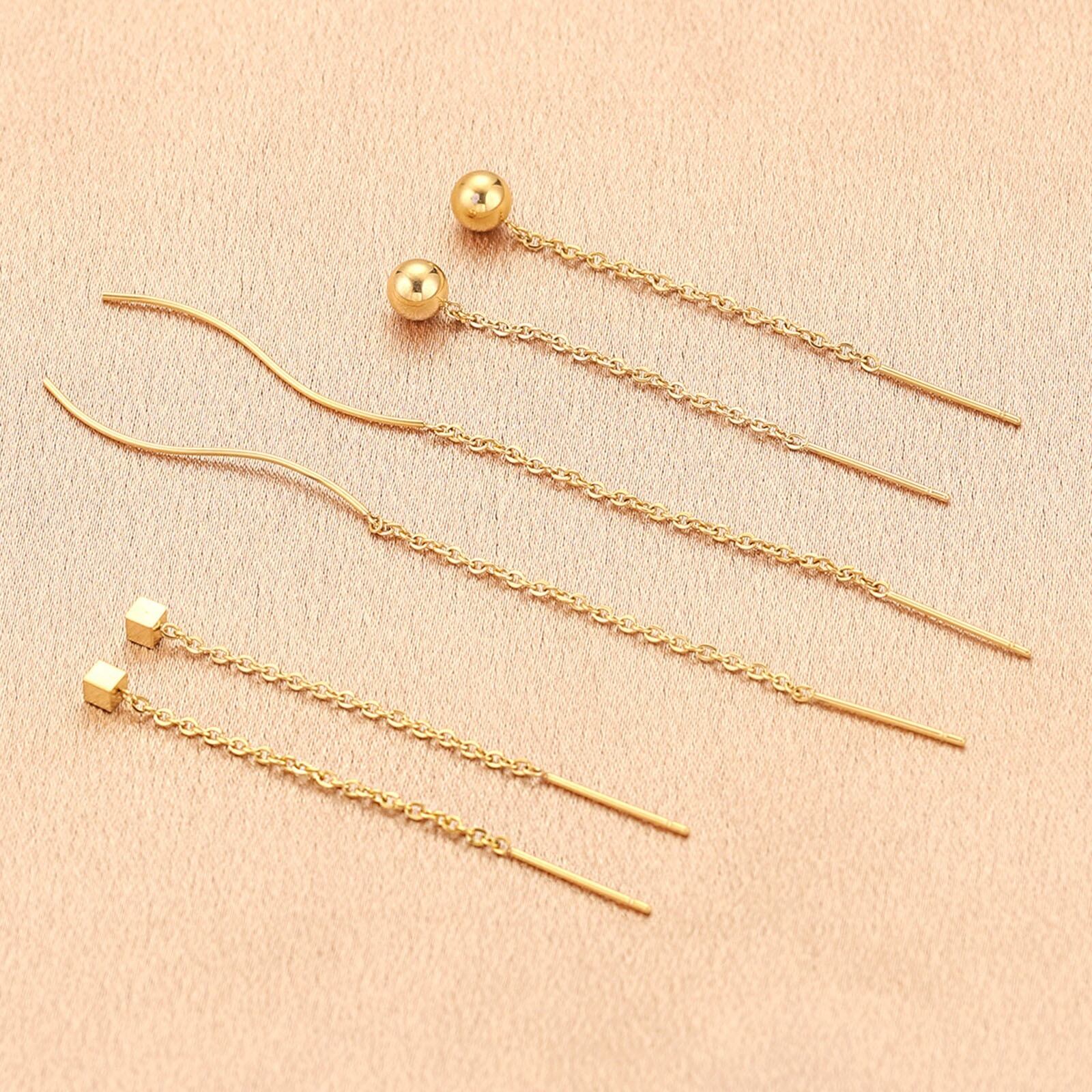 送料無料 モード Edelstahl Ohr Gewinde Einfädler Ohrringe マルチカラー Lange Quaste Kette Aufkleber Baumeln Ohrringe Für Frauen Schmuck AE66776332214653460585