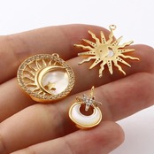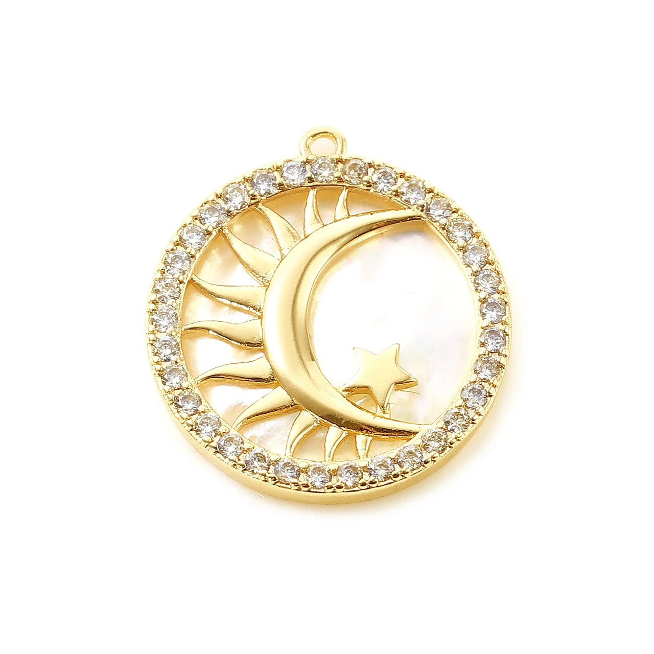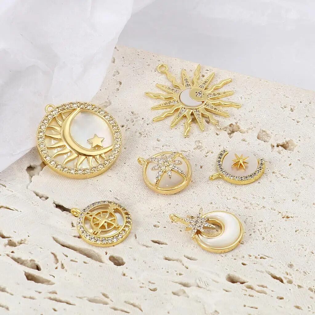 送料無料 Kupfer Galaxy チャーム ゴールド Farbe Weiß シェル Sterne Mond Anhänger DIY Machen Halskette Frauen Partei Schmuck Geschenke、1 スタック AE66776332283764798611
