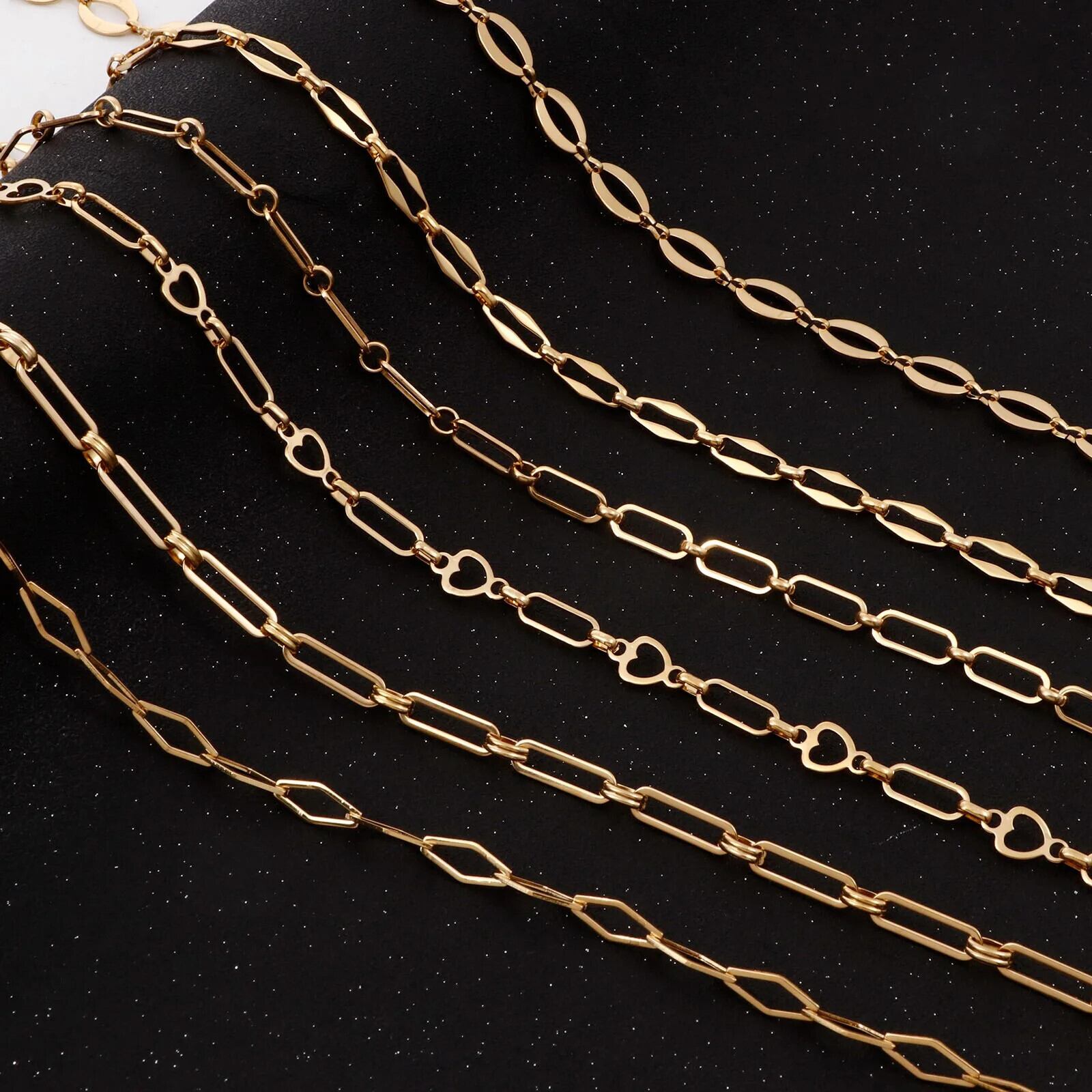 送料無料 Edelstahl Glieder kette ゴールド Farbe Geometrische チャーム Ketten DIY Halskette Armbänder Schmuck Ergebnisse Geschenk、1 Stück (約 5 m/ロール) AE66776332243943503955