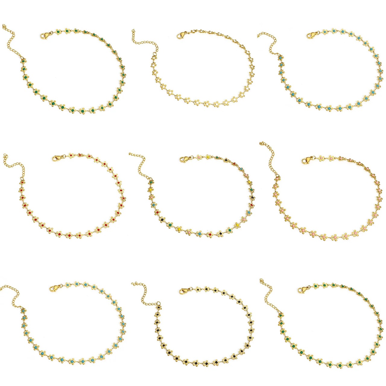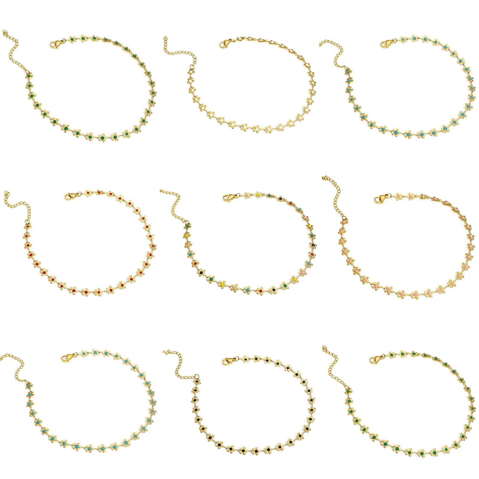 送料無料 1pc neue 304 Edelstahl Fußkettchen ゴールド Farbe グライダー kette Fußkettchen mehrfarbige Emaille Blumen 腕章 für Frauen Schmuck 25 センチメートルラング AE66776332290200431926
