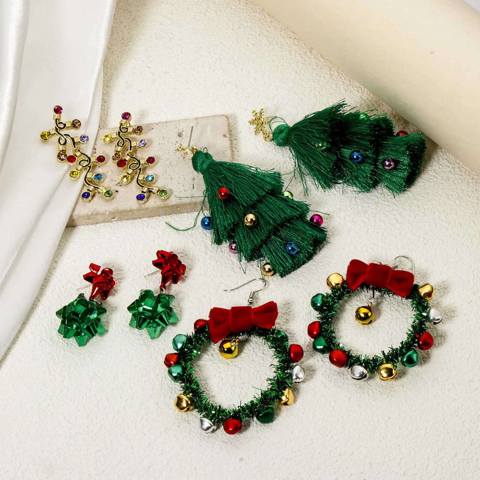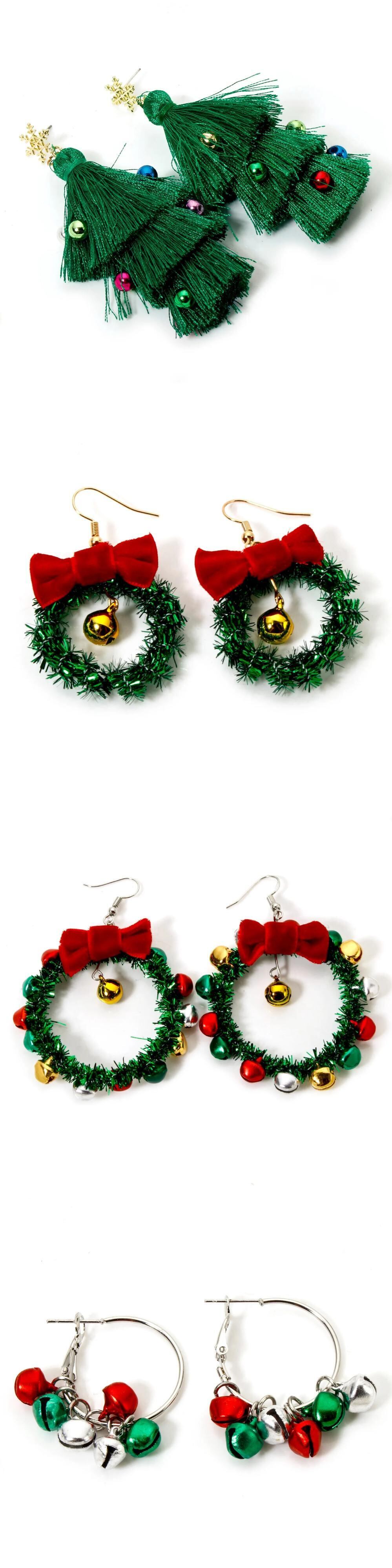 送料無料 1 ペア Neue Weihnachten Ohrringe Mehrfarbige Weihnachten Baum Jingle Bell 3D Quaste Baumeln Ohrringe Für Frauen Partei Schmuck Geschenke AE66776332297332427288