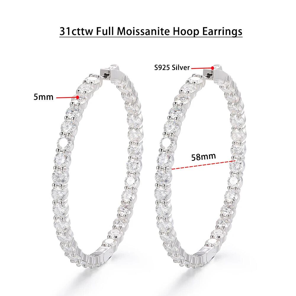 送料無料 Serenity 31cttw 5mm D Kleur モアッサナイト Hoepel Oorbellen Voor Vrouwen Bruiloft Bruids S925 Zilveren Oorbellen 記念日ギフト Fijne Sieraden AE66776665666157593366