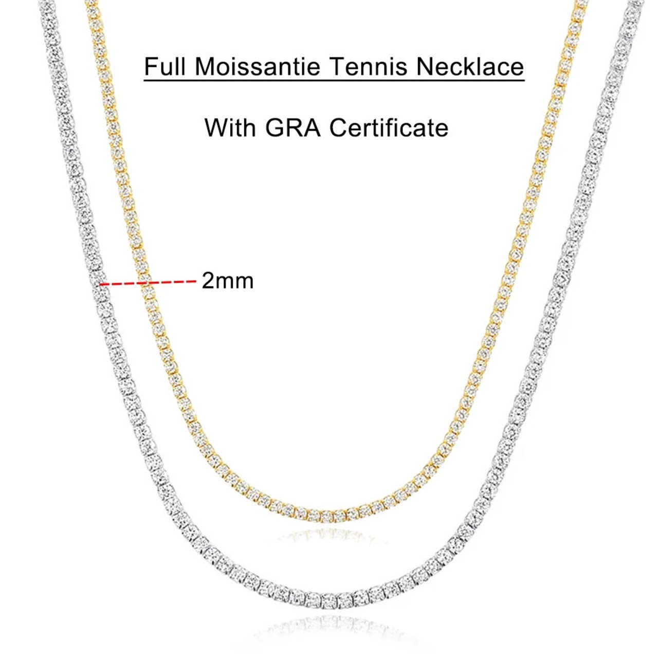 送料無料 Serenity D Farbe 2mm voller Moissanit Tennis Halskette Frauen S925 Silber Halsband Halsband Schlüsselbein Kette vergoldet 18K edlen Schmuck AE66776665621038875674