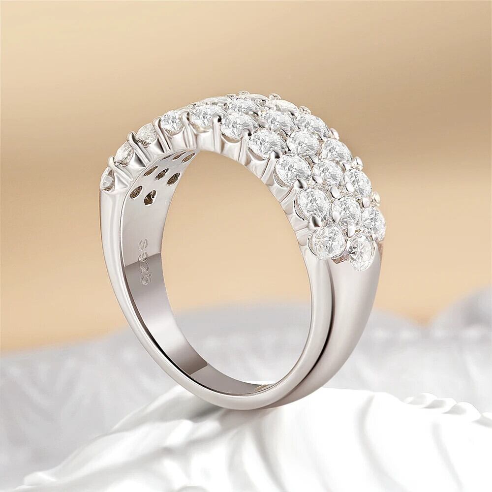 送料無料 Serenity 1,8 ct D Farbe 3-reihige Moissanit-Ringe für Frauen、Jahresttagsgeschenk、S925-Silber、funkelnde Paarringe、vergoldet、edler Schmuck AE66776665634012014844