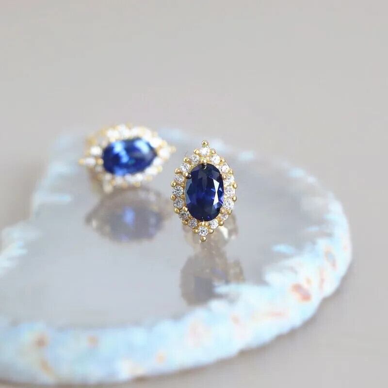 送料無料 925 スターリング ジルバー メッキ 14K Goud Blauw Grote Zirkoon Oorbellen Voor Vrouwen Franse ヴィンテージ Hoge Kwaliteit Huwelijksverjaardag Sieraden ビンテージ AE66776553227020594888