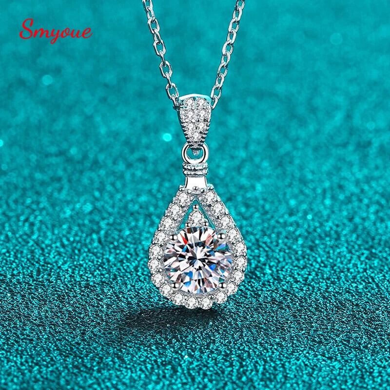 送料無料 Smyoue 100% Echt モアサナイト ハルケット für Frauen Vvs Runde Cut Diamant Anhänger für Freundin Schmuck S925 スターリング シルバー グラ AE66776776582122645505