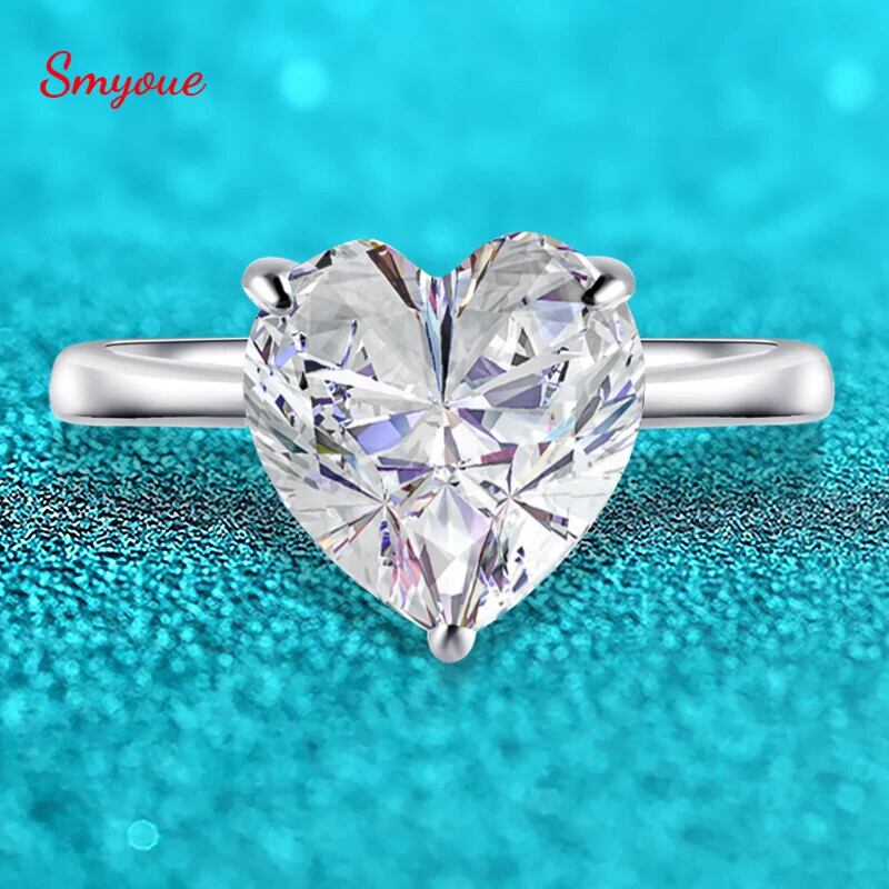 送料無料 Smyoue 4ct 10mm ハート カット モアッサナイト リング ヴア ヴロウウェン D クルール ブルード エンゲージメント バンド ラボ ダイヤモンド 925 スターリング ジルヴェレン ジーラデン GRA 指輪 AE66776776585981754533