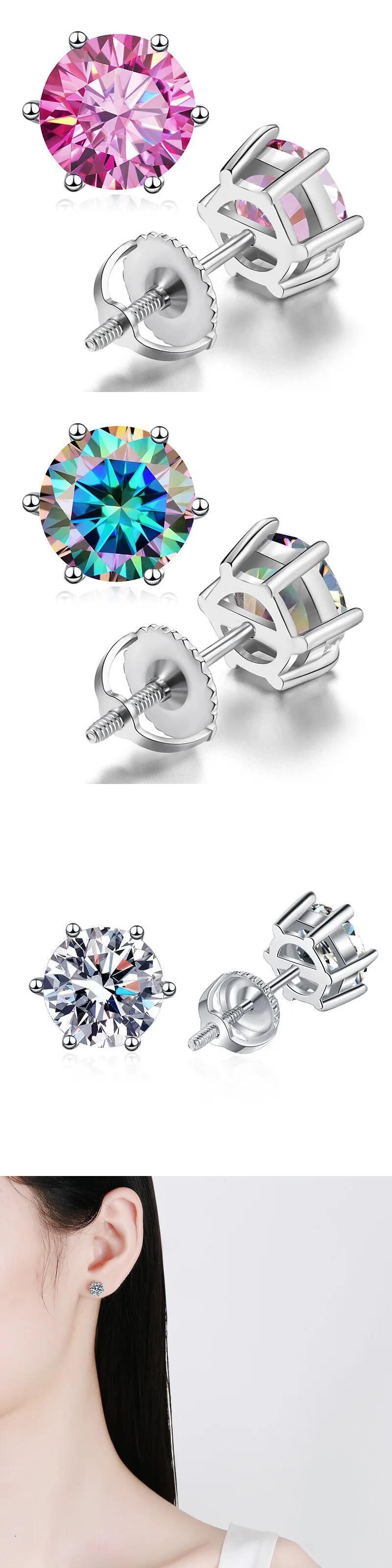 送料無料 Smyoue 0.5-2ct Schroef モアサナイト Oorknopjes Voor Vrouwen Klieke Sprankelende Bruiloft Sieraden Originele 925 スターリング ジルバー グラ AE66776776523675615866