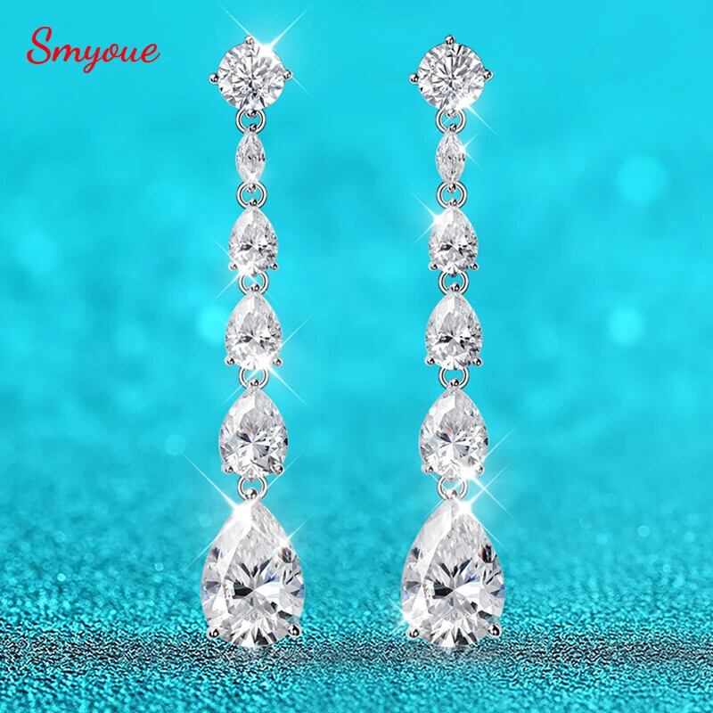 送料無料 Smyoue 17,1 cttw D Farbe voller Moissanit Tropfenohrring für Frauen 12 Steine funkelnder Labordiamant Partyschmuck 925 スターリング シルバー AE66776776571133932739