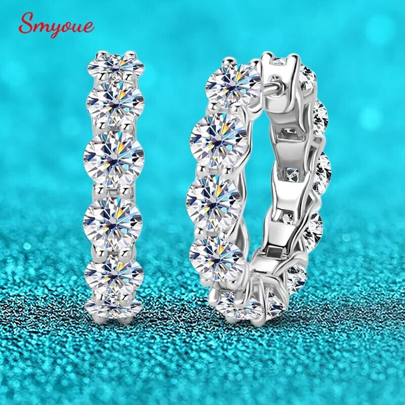 送料無料 Smyoue 6.6/7.2cttw 4mm Fonkelende Volledige モアサナイト Hoepel Oorbellen voor Vrouwen Vlekkeloze Lab ダイヤモンド スターリング ジルバー 925 Sieraden GRA AE6677677653830680185
