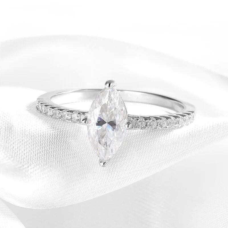 送料無料 Smyoue 1CT マーキスカット 5*10 ミリメートルモアッサナイトリング für Frauen 925 スターリングシルバー Hochzeit Vorschlag Klische バンド edlen Schmuck GRA 指輪 AE66776776537215089379