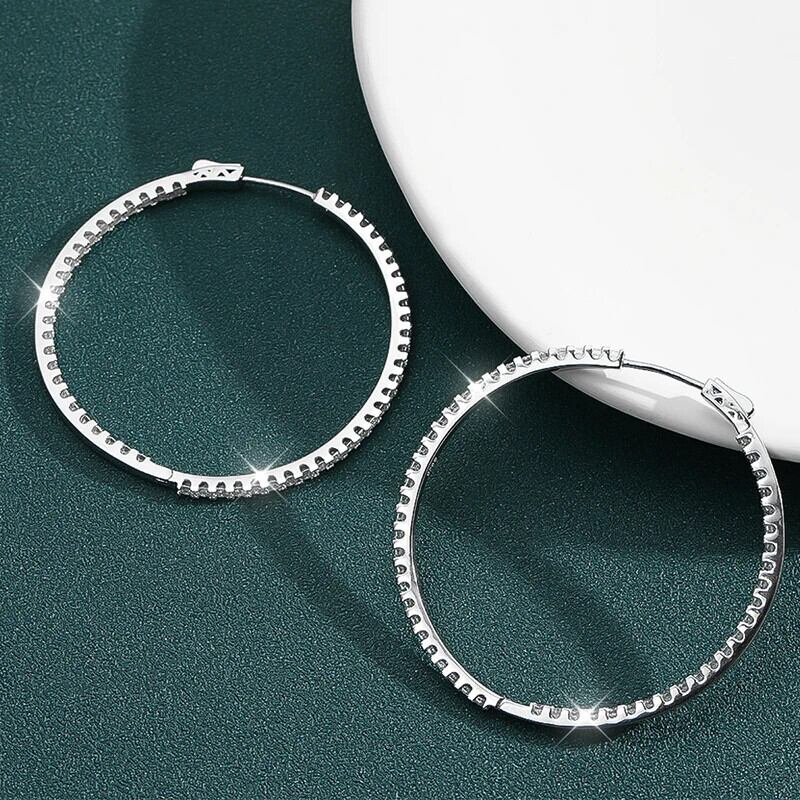 送料無料 Smyoue 2,88/6,5 cttw Voll-Moissanit-Creolen für Damen、große Größe、2,5 mm Stein、funkelnder Diamant-Ohrring、Silber 925-Schmuck、GRA AE66776776529432430199