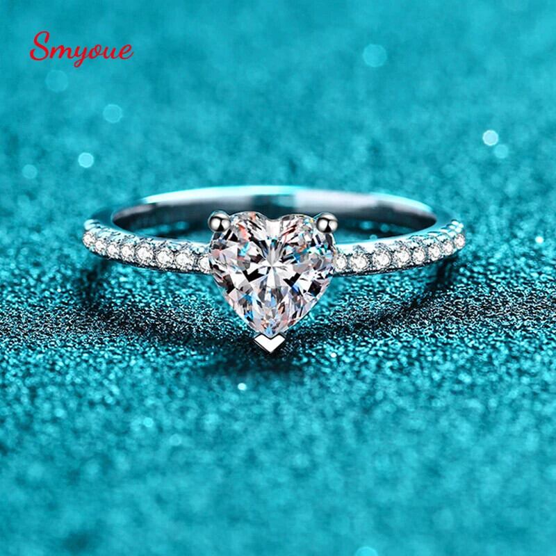 送料無料 Smyoue 1CT Herzschliff Moissanit Solitärring für Frauen PT950 platiniert 100% S925 シルバー ファンケルンダー エーヘリング フェルシュプレヒェン AE66776776515461013243