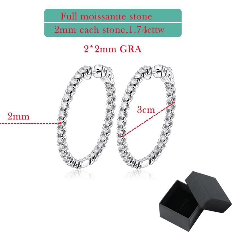 送料無料 Smyoue 18K vergoldet 1,74-6,5cttw Alle Moissanit Creolen für Frauen Lab Diamant Schmuck 100 % 925 スターリング シルバー オーリング GRA AE66776776564478209204
