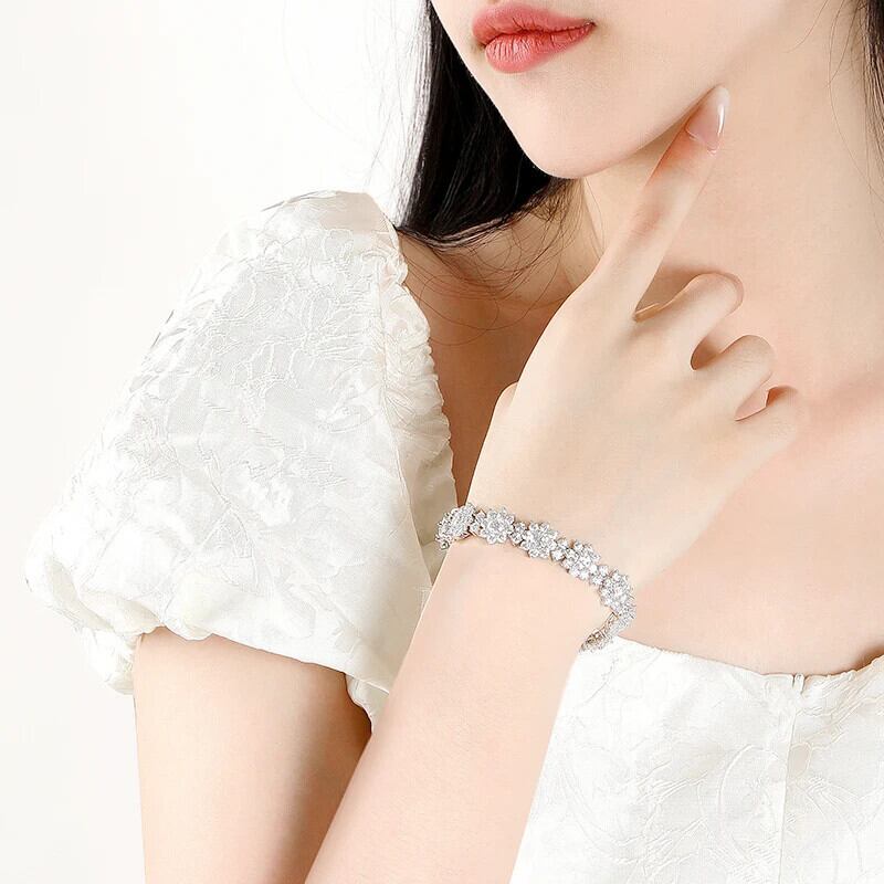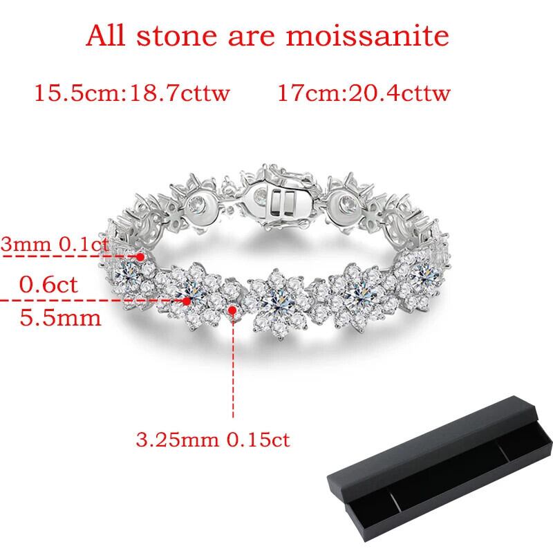 送料無料 Smyoue 18.7-20.4Cttw すべてのモアサナイト テニスアームバンド ヴォール ヴロウウェン D カラー ラックス ゾンネブルーメン フル ダイヤモンド 925 スターリング ジルヴェレン アームバンデン AE66776776541585532094