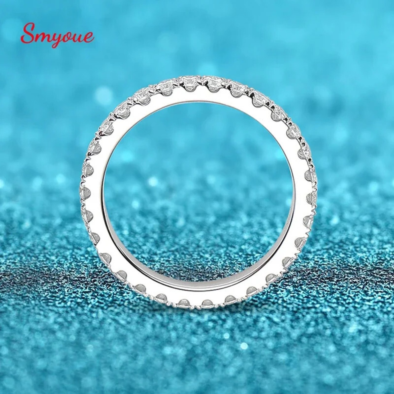 送料無料 Smyoue 0,9 カラット 2 mm モアッサナイト リング ファー ダーメン アンド ヘレン、ヴォルス エンタニティ マッチ、ホッホツァイト ディアマントバンド、100 % 925 マイル シルバー、スタペルベア リング 指輪 AE66776776553197357832