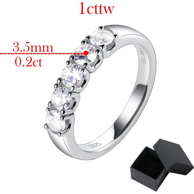送料無料 Smyoue 5 Steine 3,5 mm 0,2 CT モアッサナイト リング フラウエン ハーフ エンターニティ ラボ ダイヤモンド バンド S925 スターリング シルバー ベルゴレット 18 カラット ゴールド GRA 指輪 AE66776776577661121631