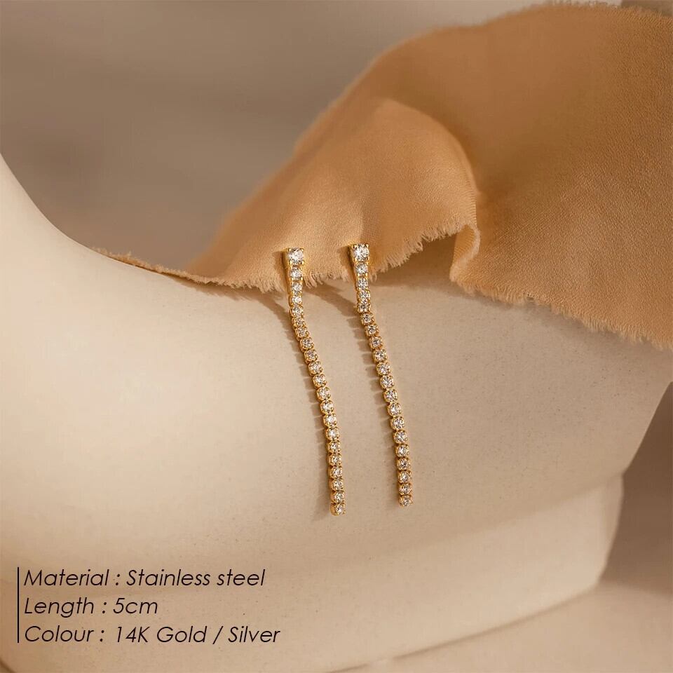 送料無料 Emanco Roestvrij Staal Vergulde Glanzende Zirkonia Oorbellen Hoge Kwaliteit Nieuwe Dames Enkele Rij Kwastje ハンガー モード アクセサリー AE6677688863673225913