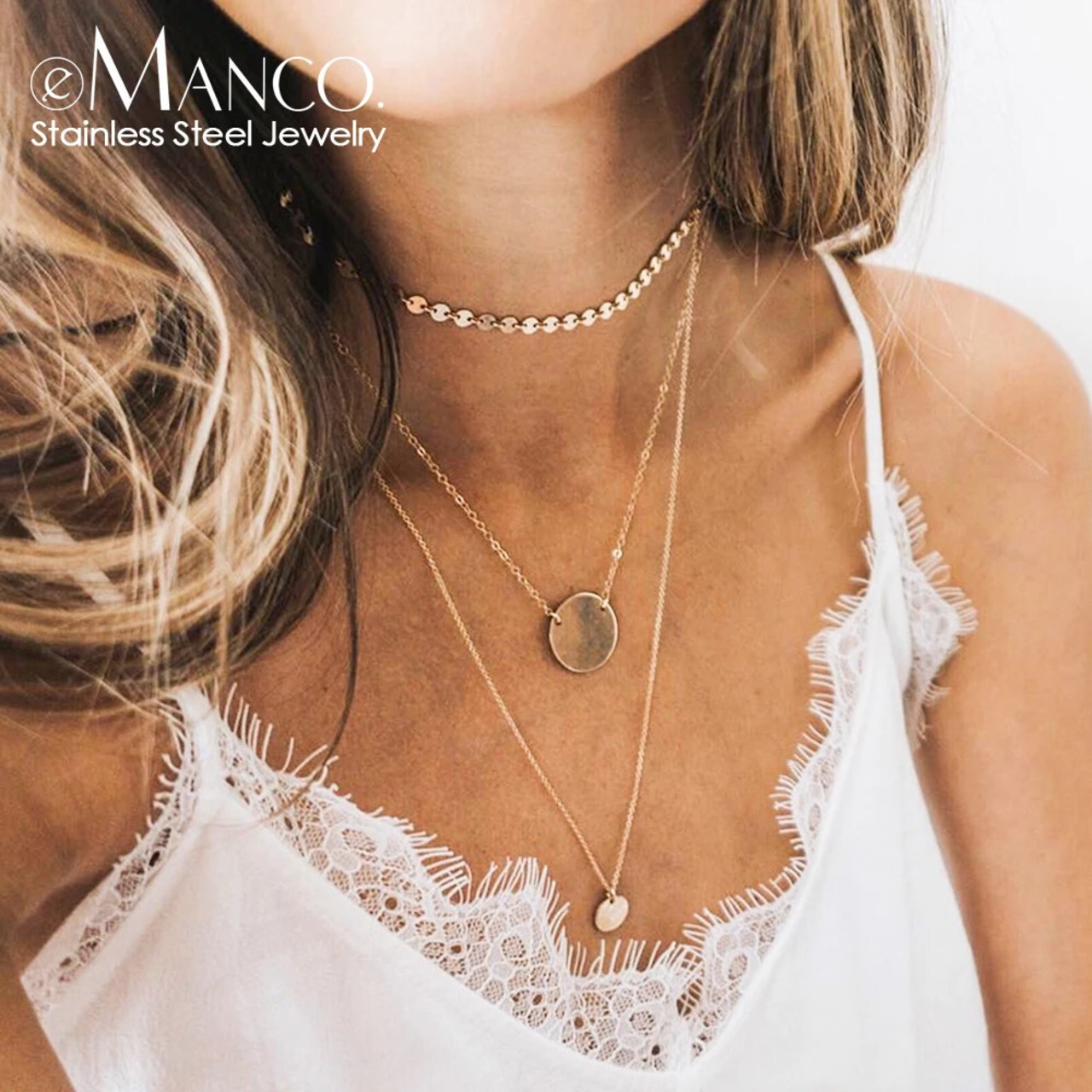 送料無料 eManco 2-Teilige Halskette für Damen、nicht verdunkelt、echte Halskette aus 316L-Edelstahl für Damen、Kette、Modeschmuck AE6677688823144104434