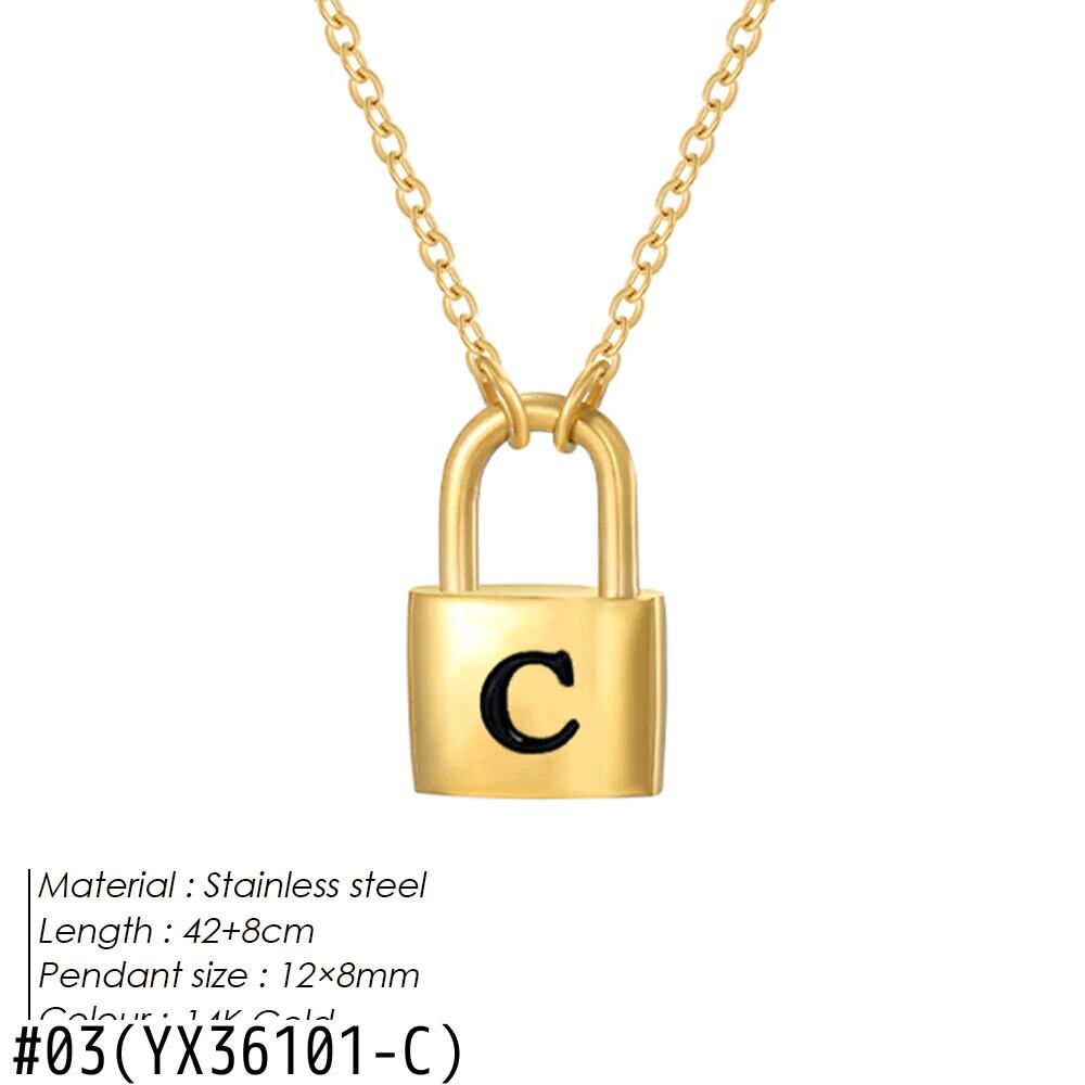 送料無料 eManco Minimalistischer 14K vergoldeter Edelstahl mit Verschluss、Initialen、A-Z-Anhänger、kurze Vorhängeschloss-Halskette für Damen im Großhandel AE6677688840198736967