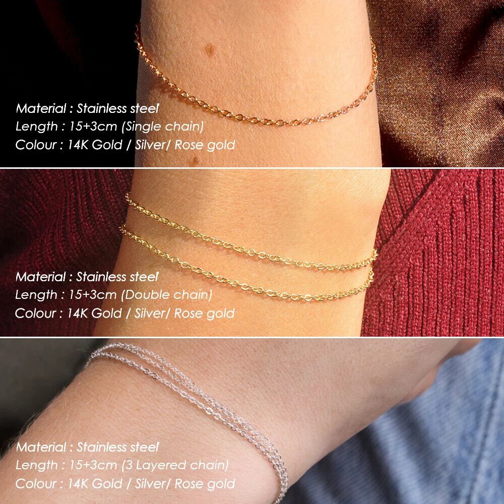 送料無料 Nieuwe Mode Eenvoudige Kralen Ketting Armband Sieraden Multi gelaagde Dunne Link Chain Armband Voor Vrouwen Roestvrij Stalen Ketting Sieraden チェーン AE6677688817082307884