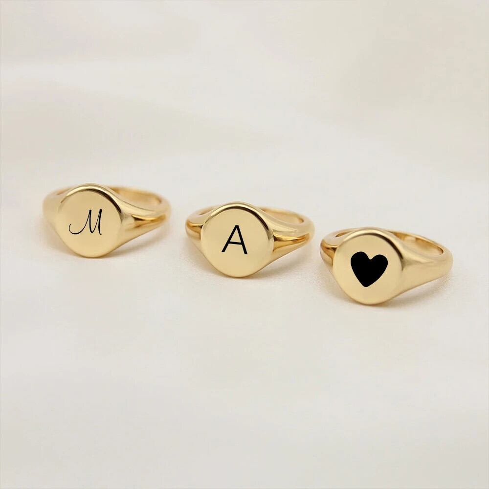 送料無料 Emanco maßge schneiderte Frauen Siegelring、klobige runde Spitze Anfangs buchstaben Stempel、Edelstahl パンク Candid Modeschmuck AE6677688898457429836